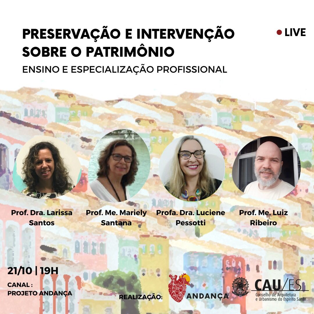 Hoje, dia 21/10, às 19h, o MP-CECRE participará de uma conversa sobre preservação, intervenção e especialização profissional na atuação sobre o Patrimônio, promovida pelo Programa Andanças do CAU-ES. Acessem o link: https://www.youtube.com/watch?v=U8mxY5ZB3WQ